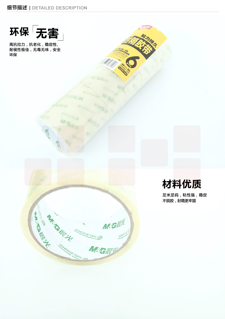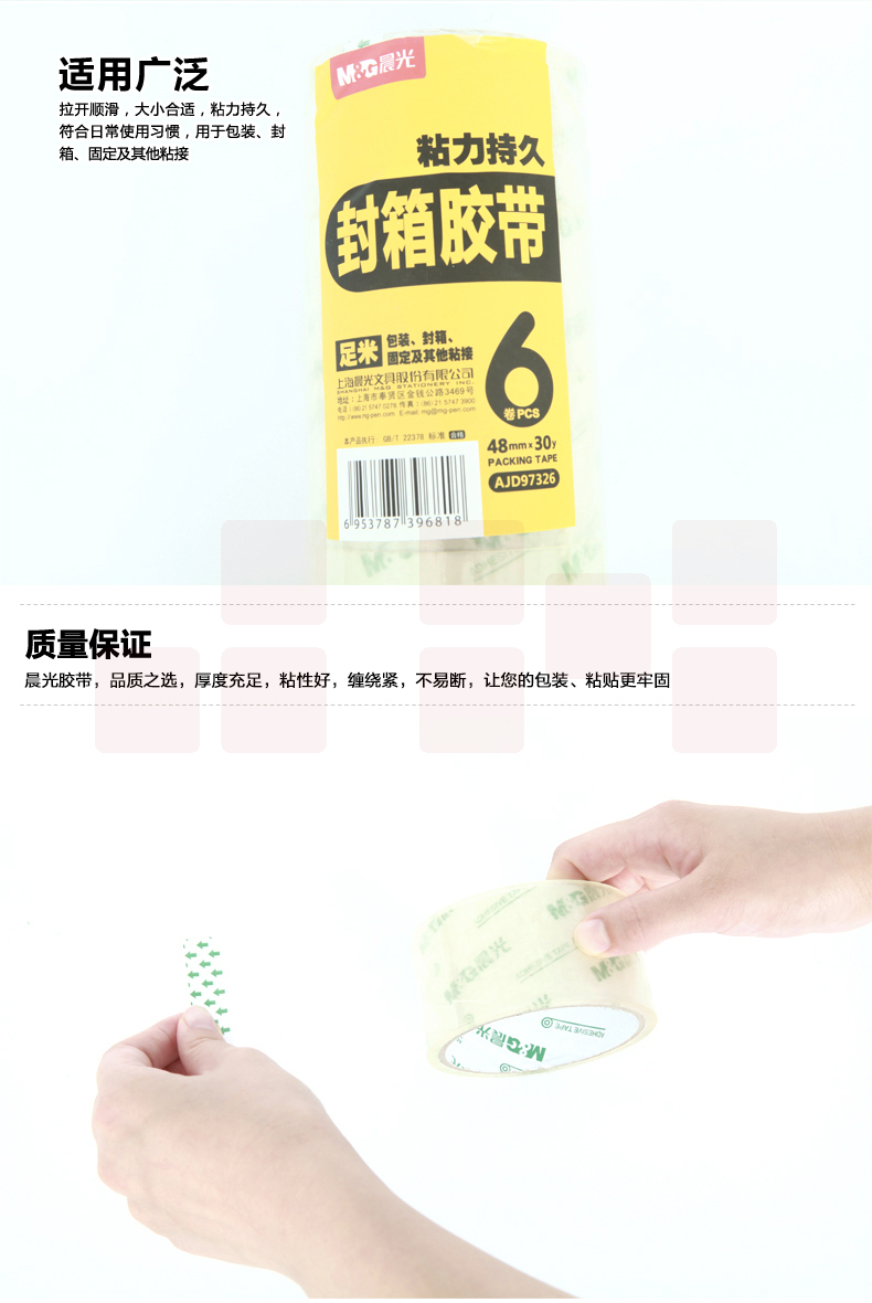 晨光(M&G)普透封箱胶带48mm*30Y 透明胶带 办公用品AJD97326 一包6卷