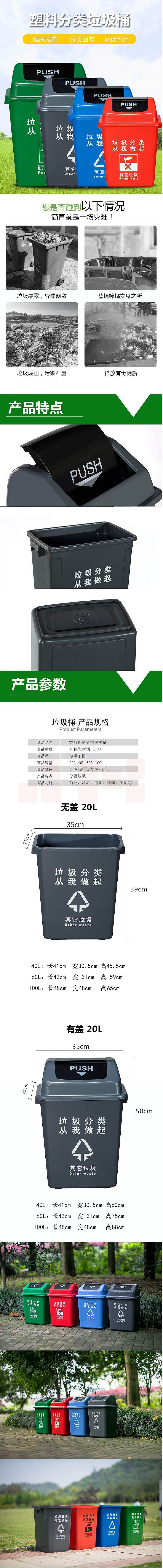 ABEPC 40L 大号四色塑料垃圾分类垃圾桶 蓝色分类FL025(个)