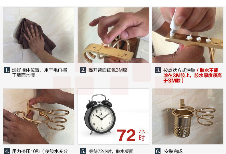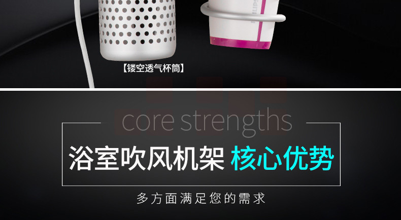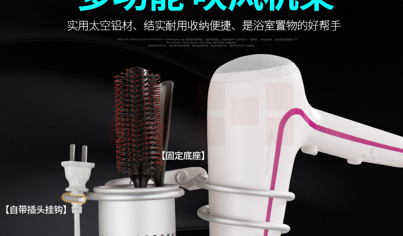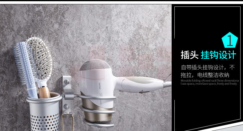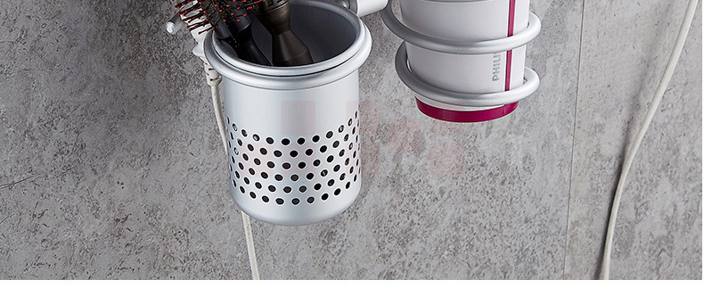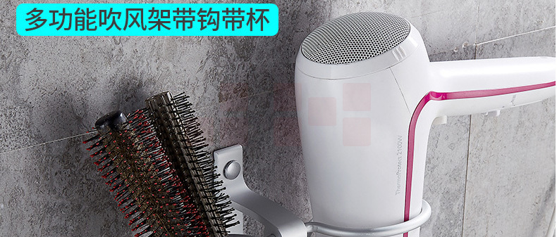 太空铝电吹风机支架牙刷架子 壁挂免打孔 带双钩 带杯