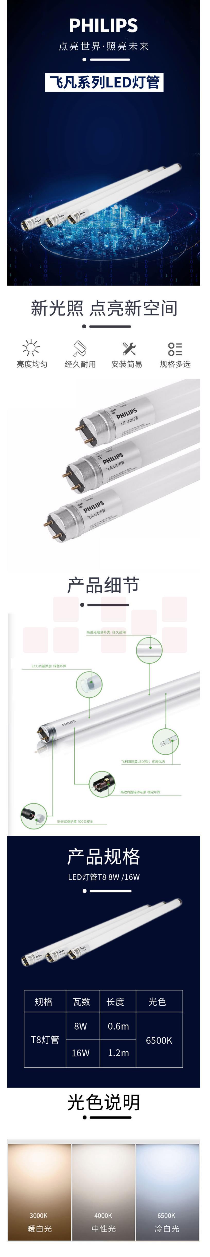 飞利浦(PHILIPS) T8 16W 6500K 1200mm LED灯管 货号:ZF
