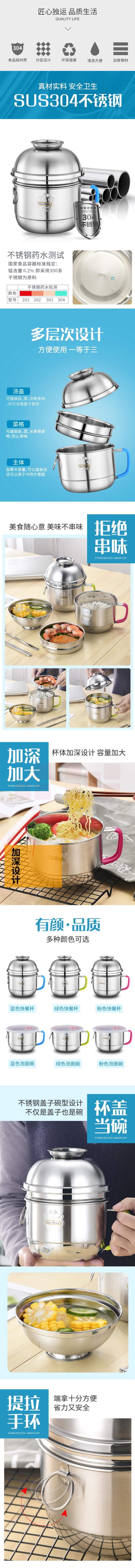 304不锈钢快餐杯 加厚圆形餐盒 学生食堂饭缸 宿舍泡面杯 1300ml