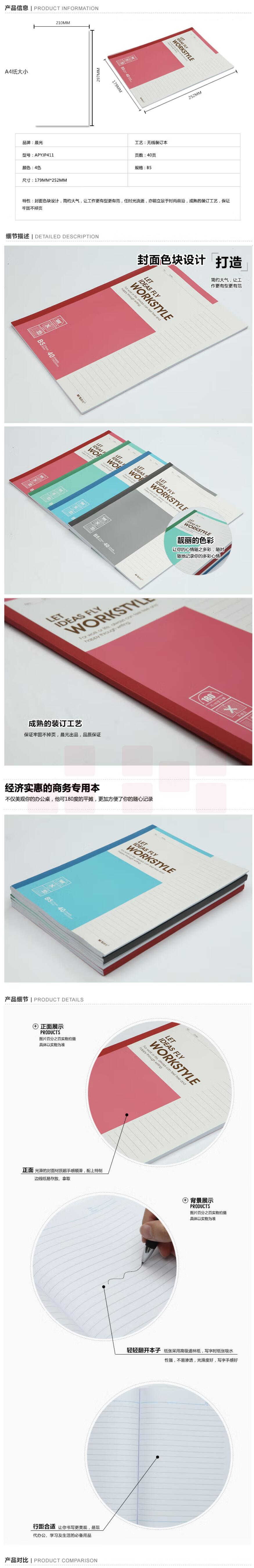 晨光 B5无线装订本40页记事本APYJP411