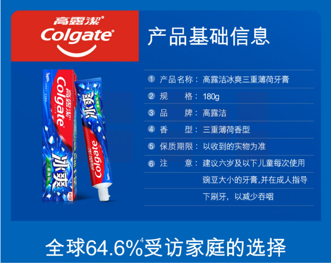 高露洁 180克 冰爽薄荷牙膏(新老包装随机发)