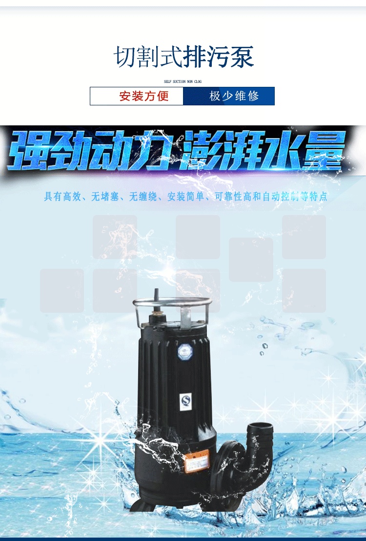 上海人民 切割型污水泵 80WQAS50-10-4KW 380V 口径80mm 扬程10m流量50