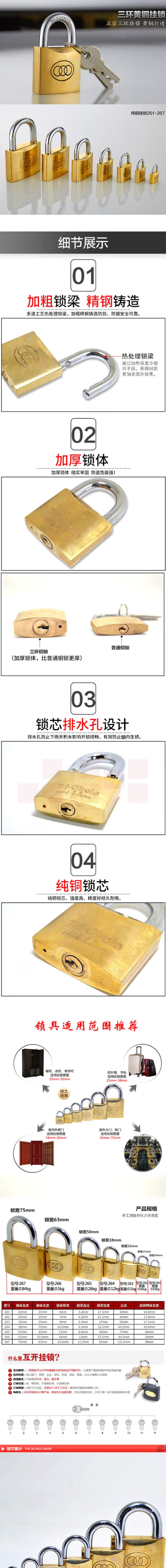 三环 铜挂锁 63mm 配10把钥匙 (定制款联系客服)