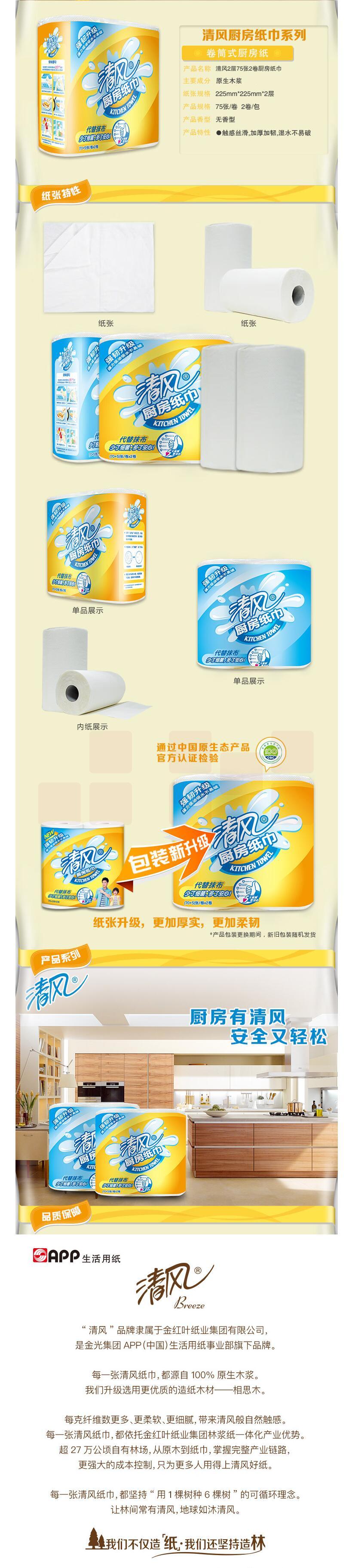 清风 厨房用纸 吸油纸 吸水纸 75段*2卷 加厚厨房卷纸 货号:LJ