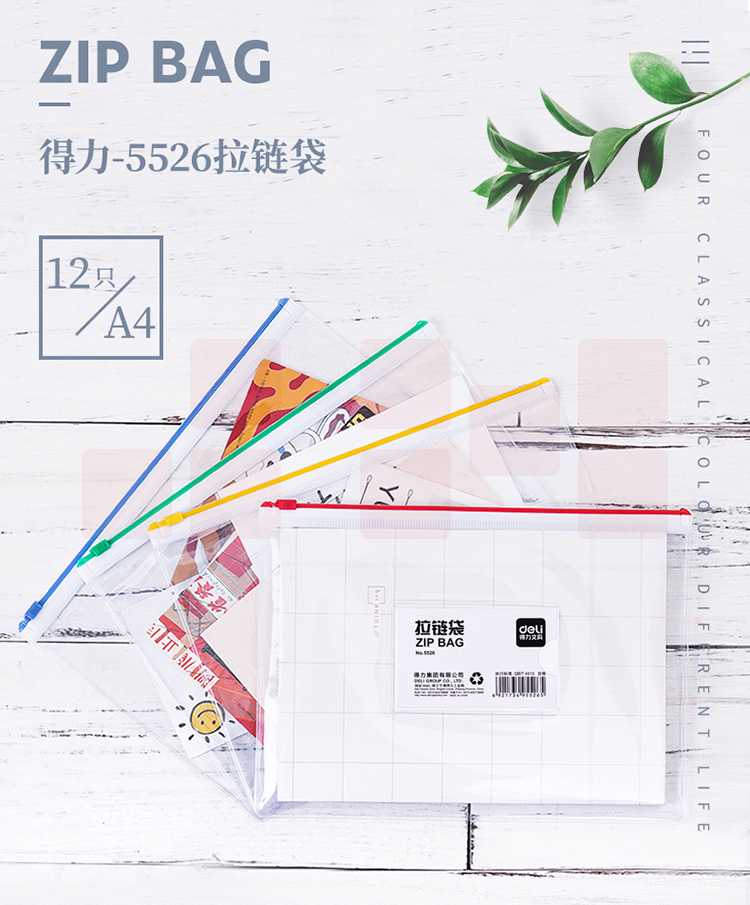 得力(deli) 5526透明文件袋 办公文件袋 12只装