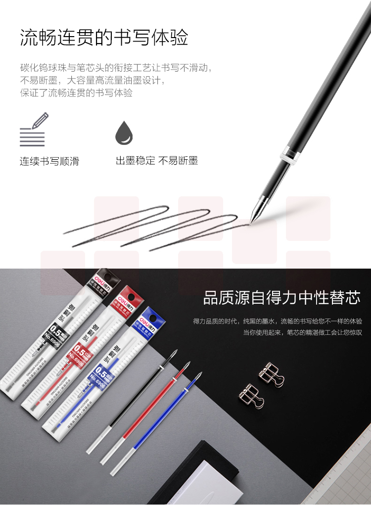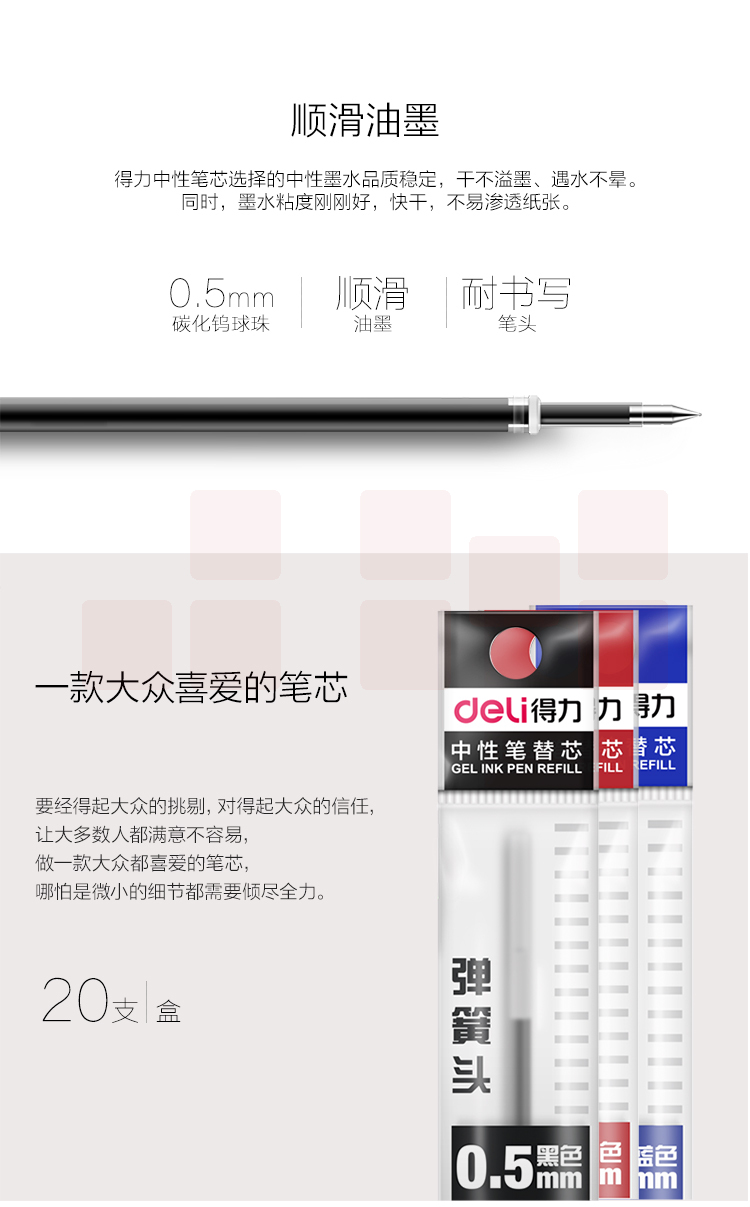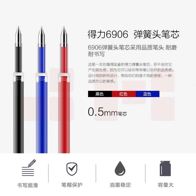 得力(deli) 6906 按动笔芯中性笔替芯0.5mm 黑色 20支/盒