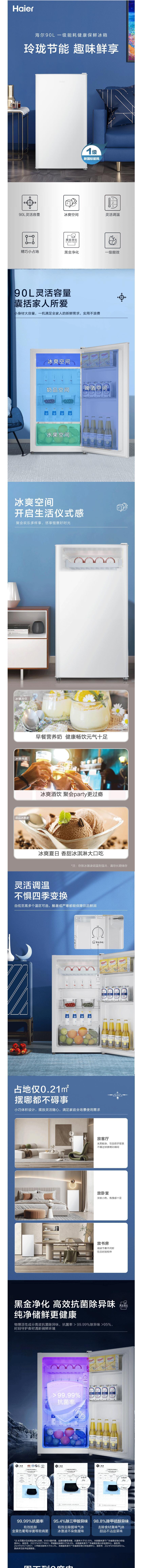 海尔(Haier)冰箱90升小型家用租房办公室床头冷藏保鲜单门冰箱