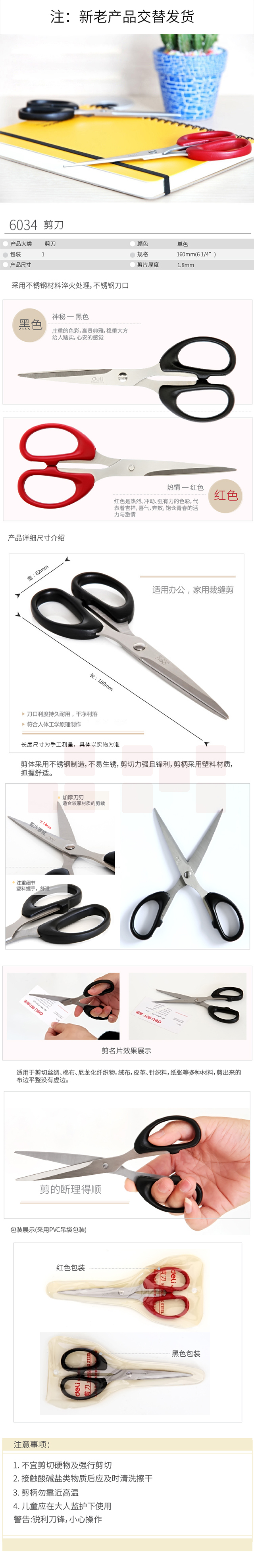 得力160mm小号办公剪刀 手工剪刀 红色6034