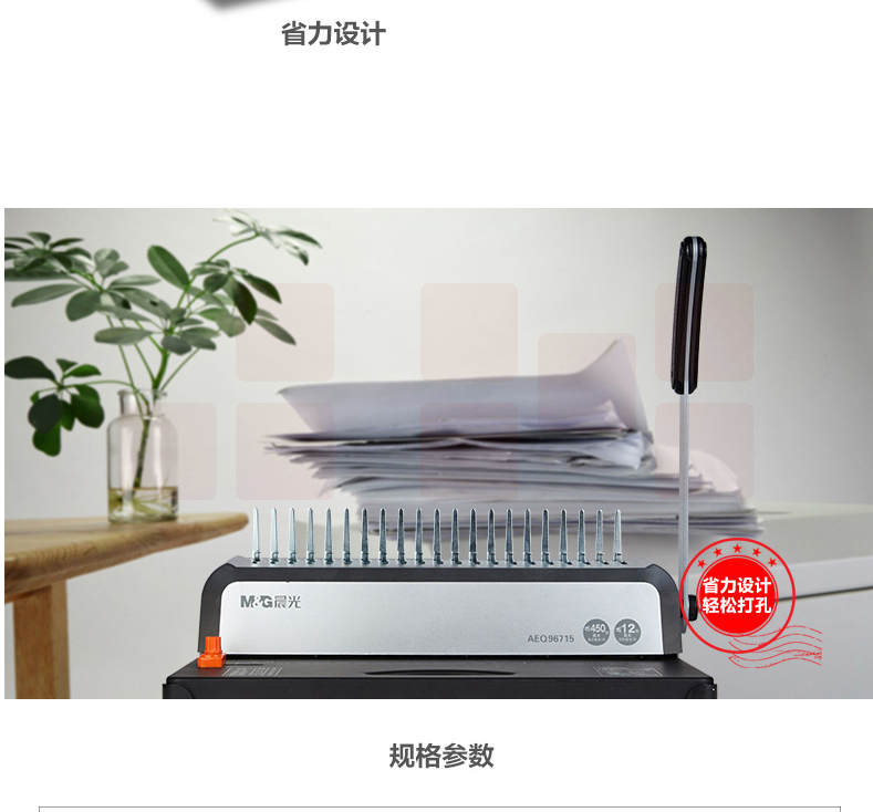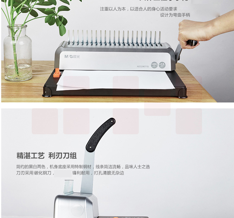 晨光 AEQ96715 胶圈装订机梳式21孔财务装订机