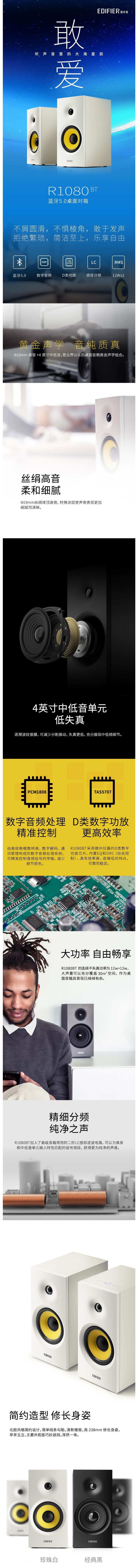 漫步者 (EDIFIER)R1080BT 2.0声道 电脑音箱 多媒体音箱 蓝牙音箱 木质音响 黑色