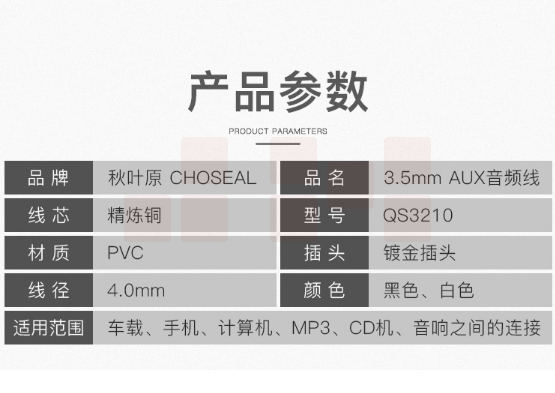 秋叶原(CHOSEAL)QS3210AT10 音频线 3.5对3.5 汽车AUX线 10米