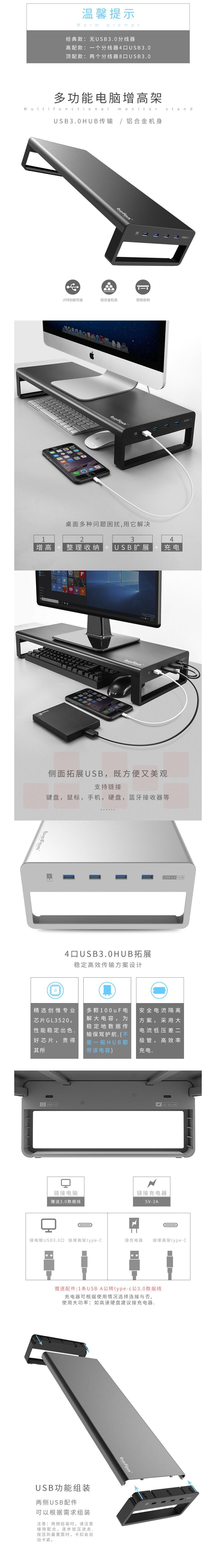 倍方 电脑显示器增高底座 4口usb3.0高配款 显示器底座 键盘收纳底座 笔记本底座