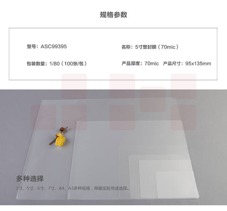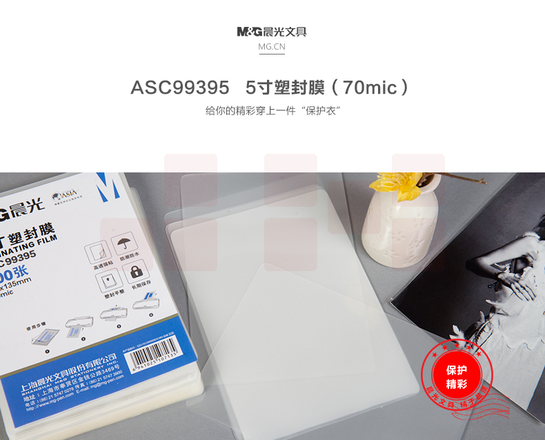晨光(M&G)5寸防水塑封膜70mic照片护卡膜一包100张ASC99395