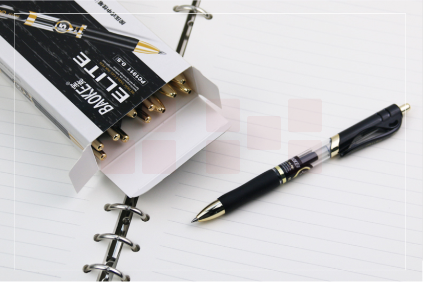 宝克 PC1909 按动中性笔 0.5mm签字笔 顺滑水笔黑色12支