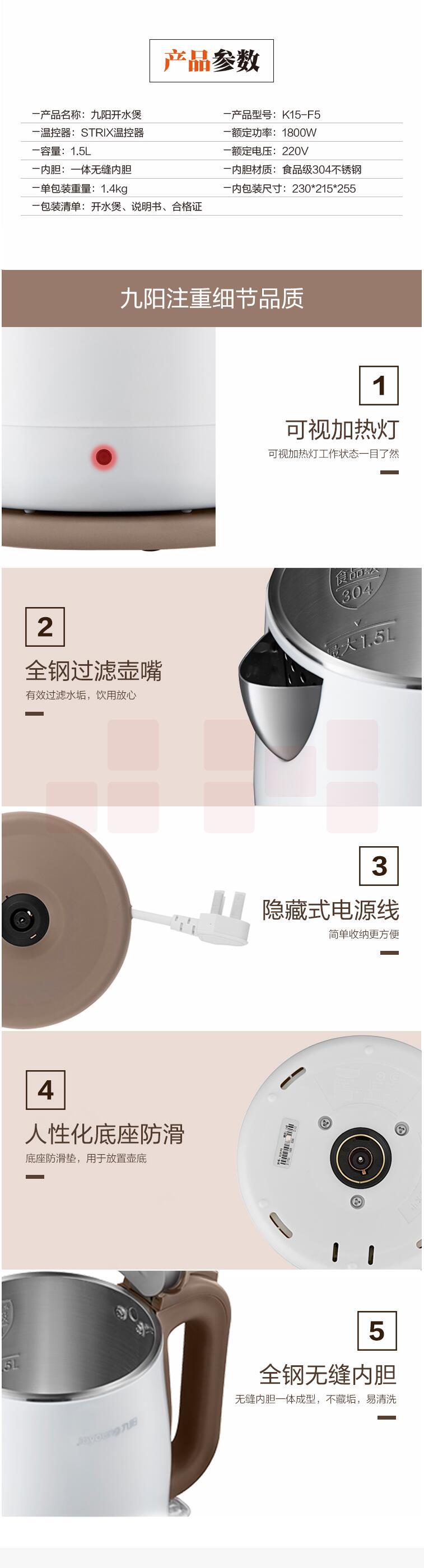 九阳 1.5L/K15-F5 电水壶双层保温防烫开水煲热水壶
