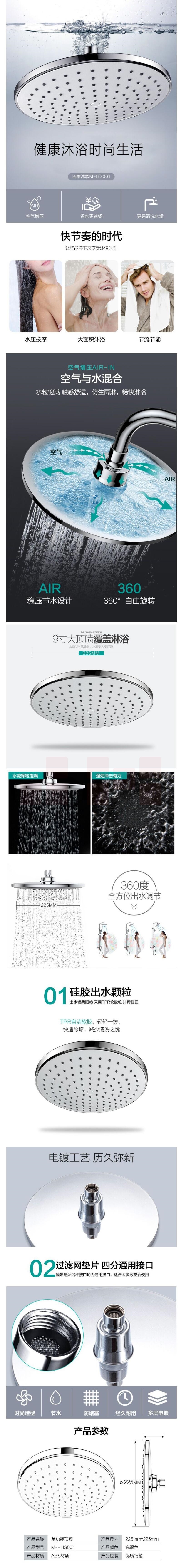 四季沐歌(MICOE)M-HS001 卫浴花洒喷头 淋浴花洒喷头 顶喷头莲蓬头