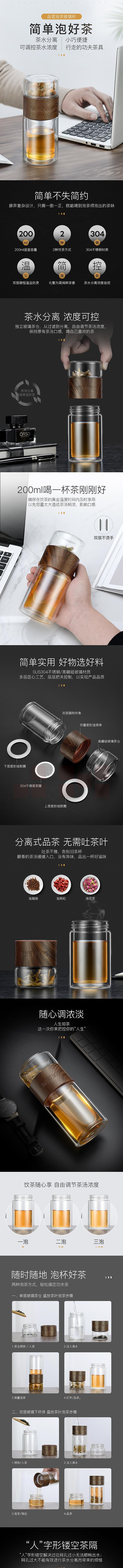 绿珠 双层玻璃杯 茶水分离过滤办公泡茶水杯200ml B730木纹