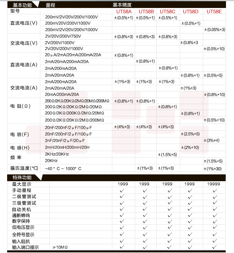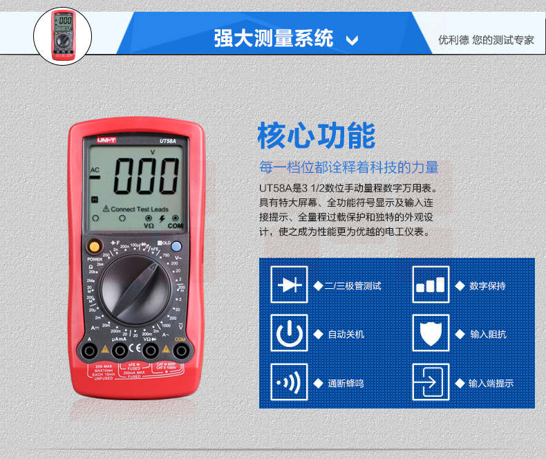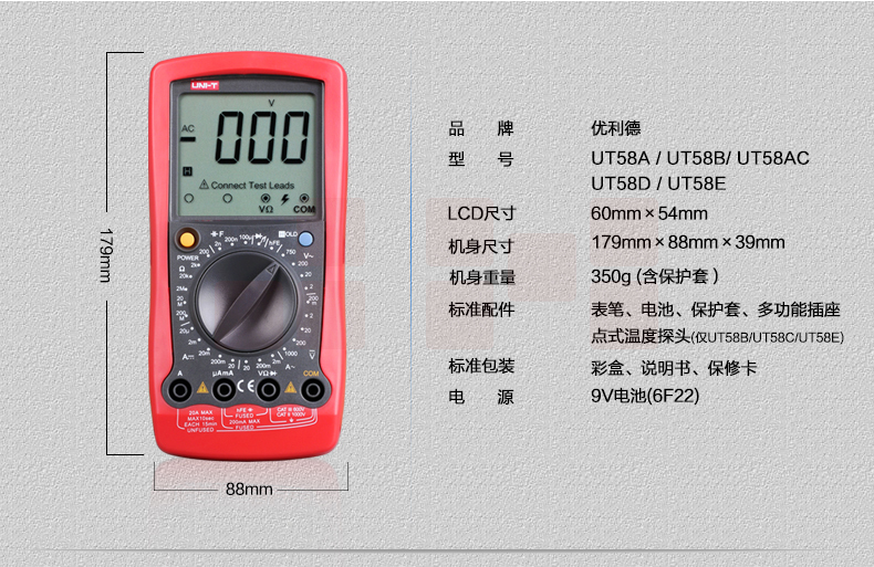 优利德(UNI-T) 大屏数字万用表 UT58B/58C/58D/58E