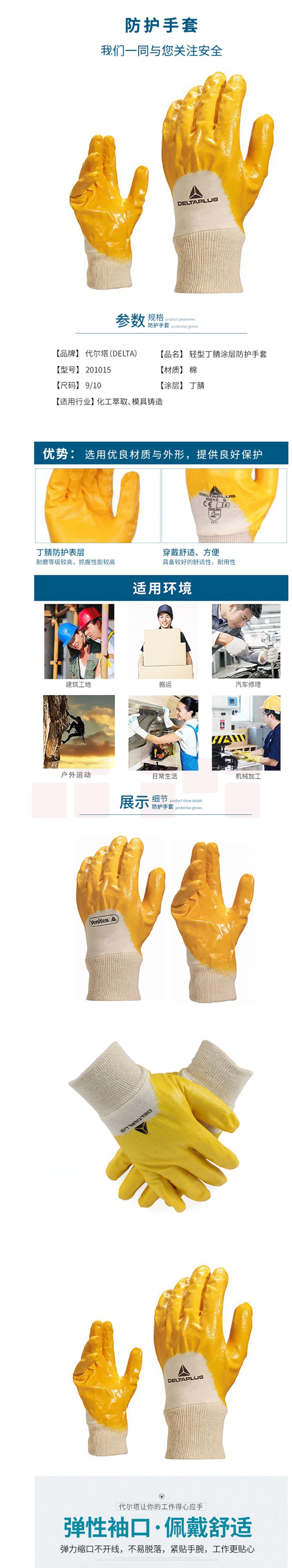 代尔塔 201015 劳保工作手套轻型丁腈涂层针织手套 耐磨抗撕裂
