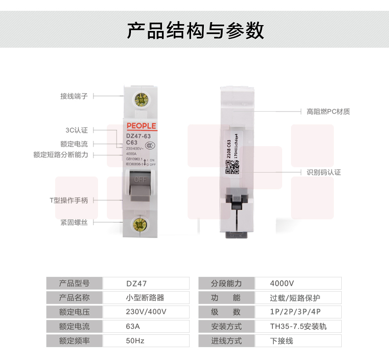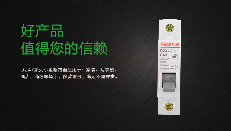 人民电器(PEOPLE)断路器 1P DZ47空气开关 10-63A