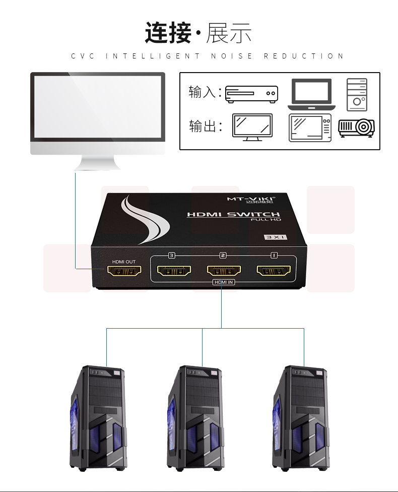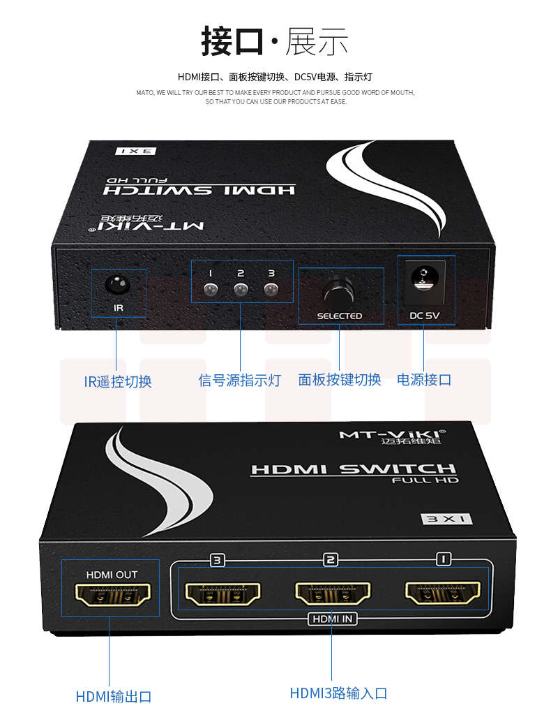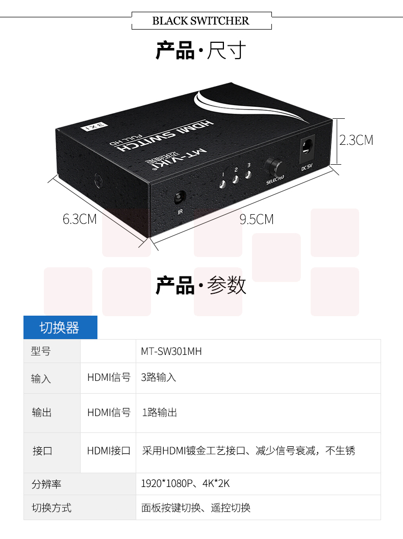 迈拓维矩MT-SW301MH hdmi切换器三进一出2进1出hdmi高清音视频切屏器