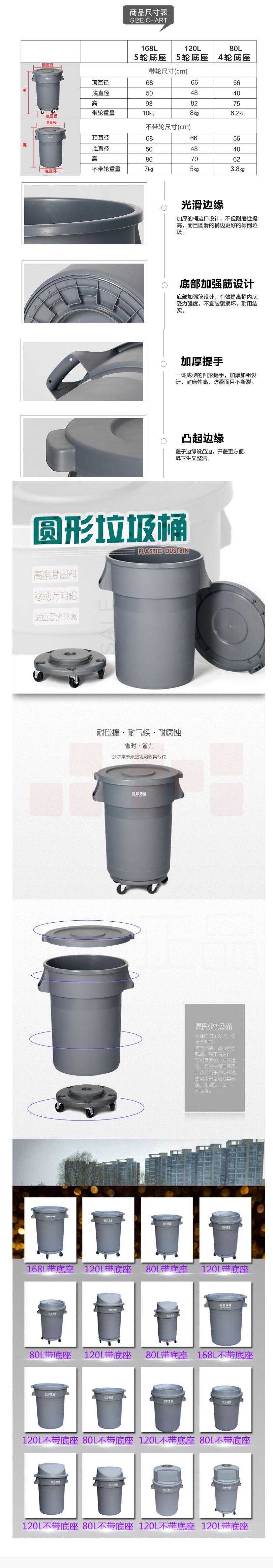 白云清洁(baiyun cleaning)AF07502 120L 带轮 带底座垃圾桶圆形加厚塑料桶