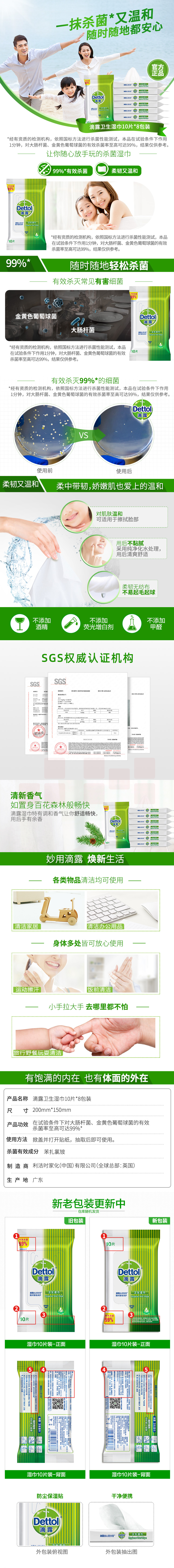 滴露 卫生湿巾10片 杀菌99% 8包/组