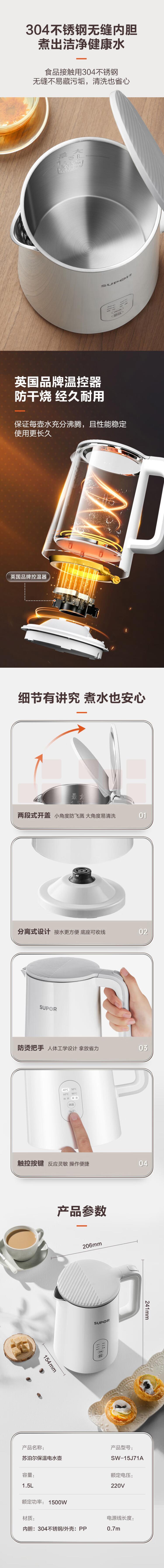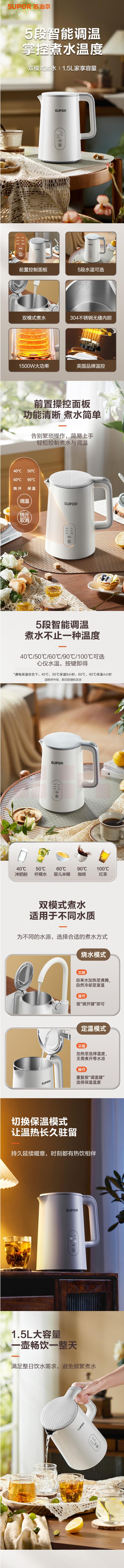 苏泊尔 电水壶1.5L烧水壶 温度显示 触控操作 5段调温电热水壶 SW-15J71A