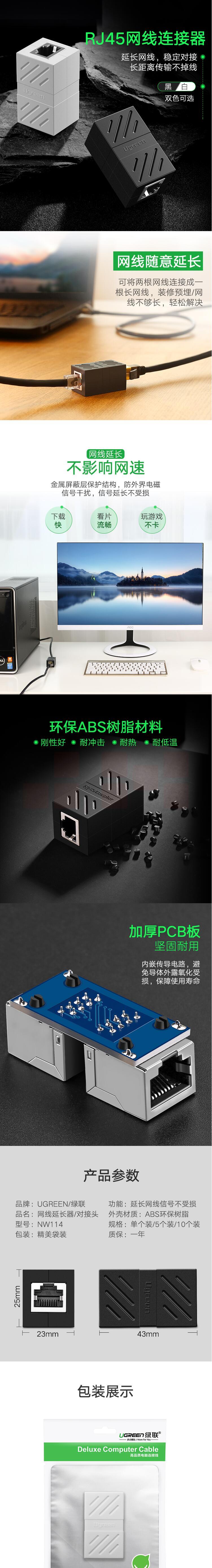 绿联(UGREEN)20390 RJ45 网线连接器 网线对接头连接头 双通头直通头模块 黑