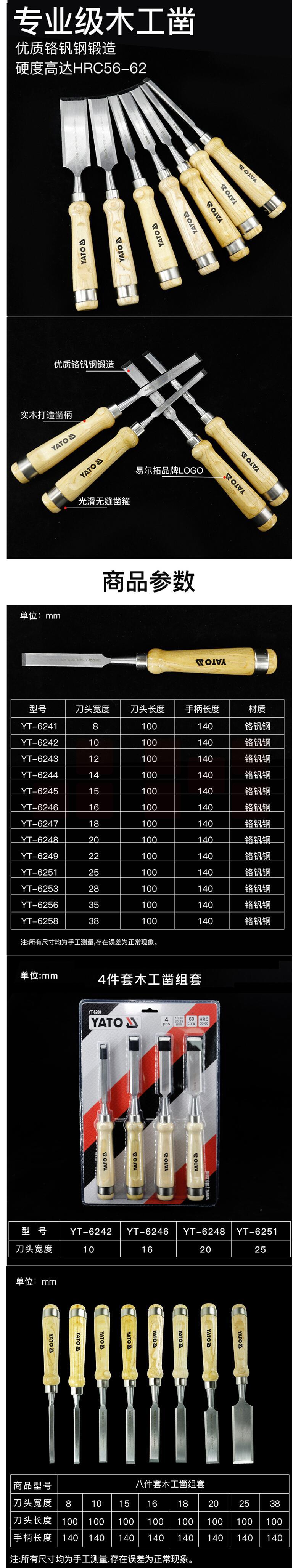 易尔拓 木柄木工凿组套 YT-6260 4件套