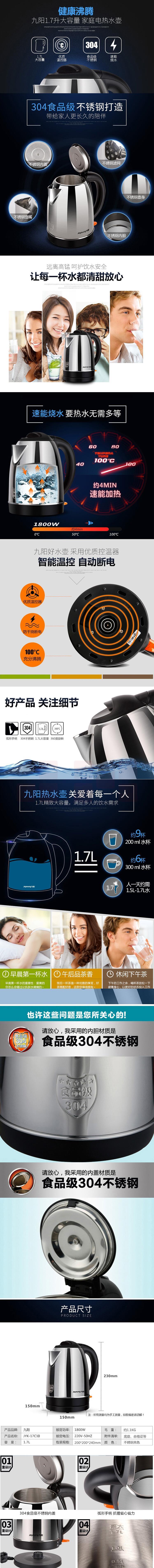 九阳电水壶家用1.7L不锈钢开水煲 JYK-17C10