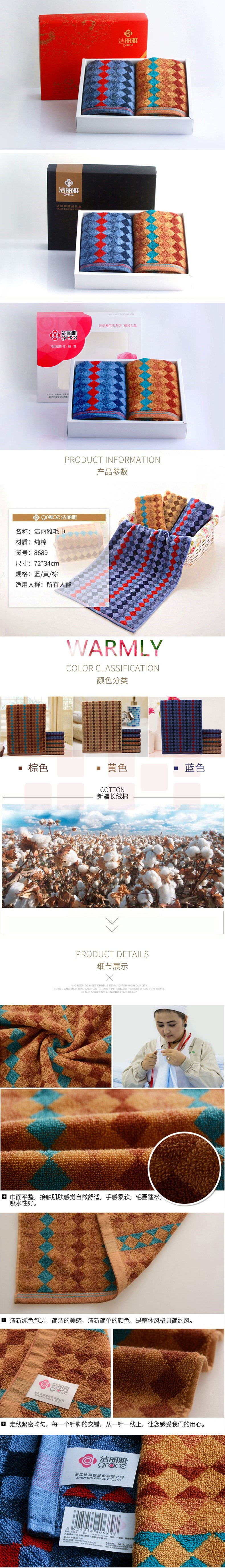洁丽雅 8689 毛巾 34*72 男士纯棉毛巾 全棉健康吸水面巾(单条价)