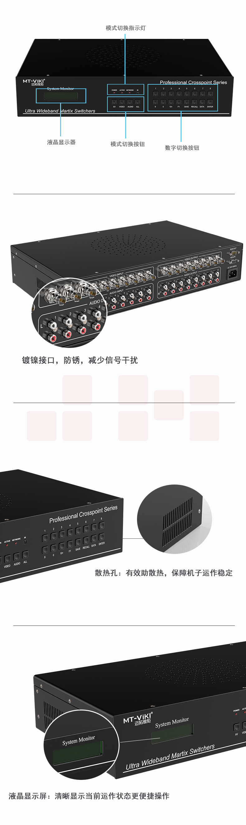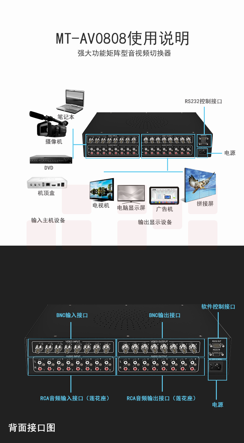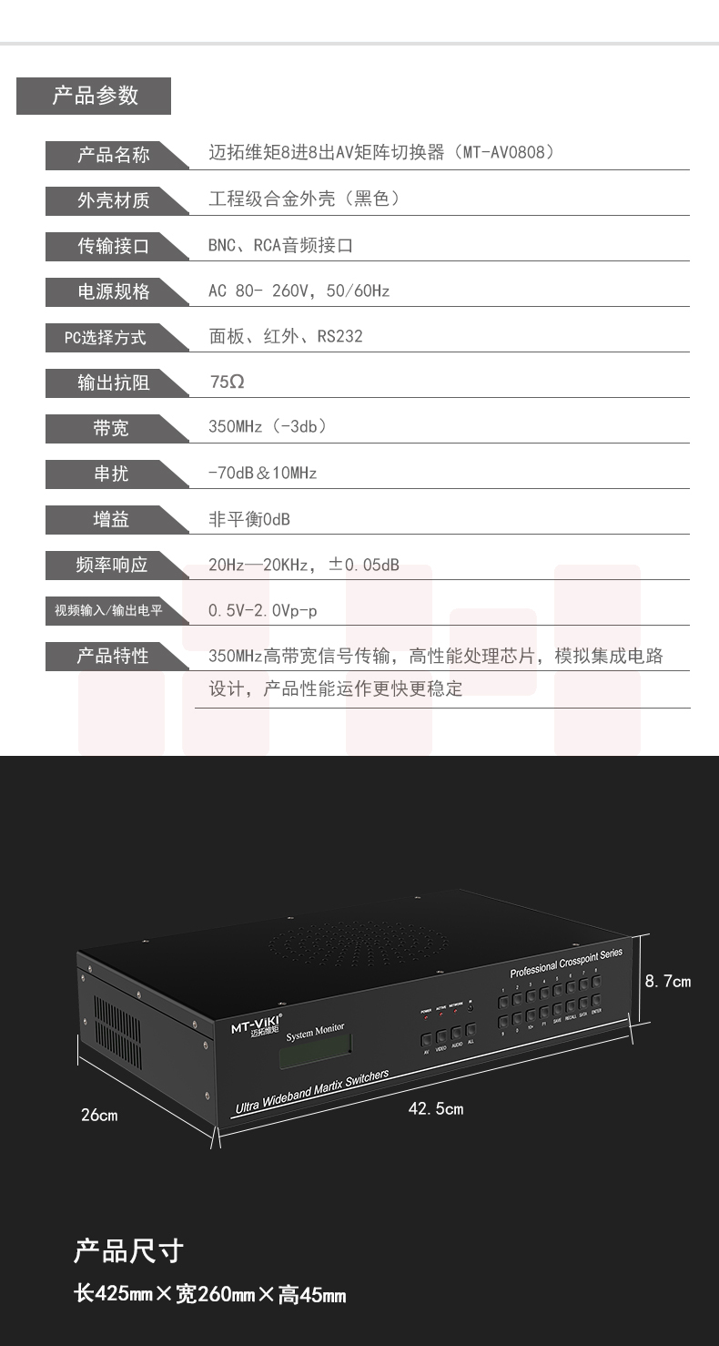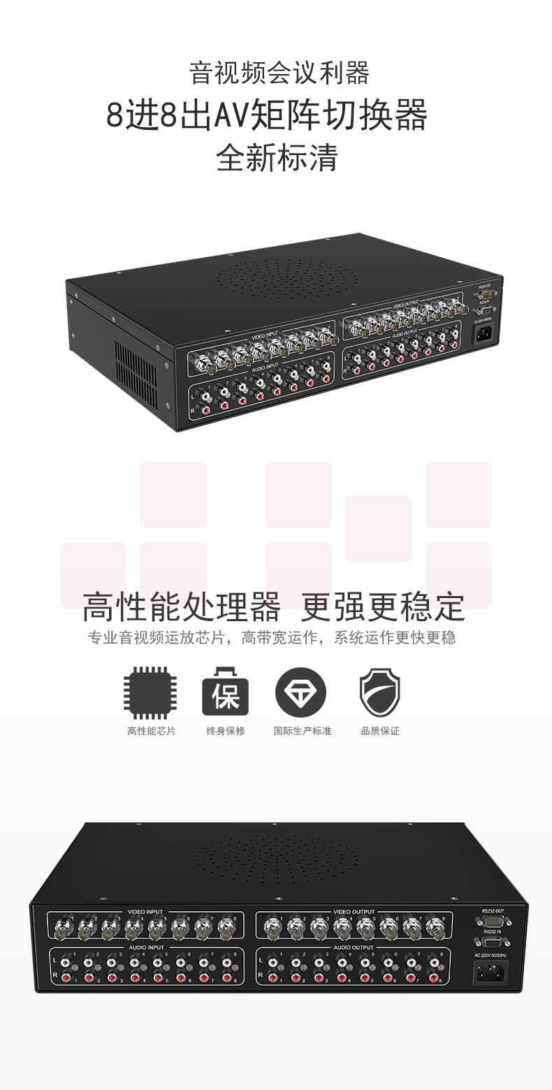 迈拓维矩MT-AV0808 av矩阵8进8出高清监控音视频矩阵切换器八进八出
