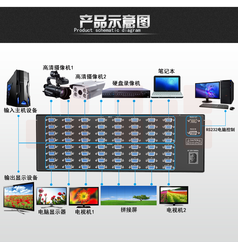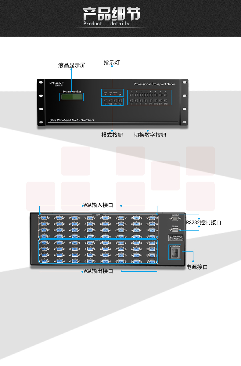 迈拓维矩MT-VT3232 vga矩阵切换器32进32出高清监控视频矩阵切换器