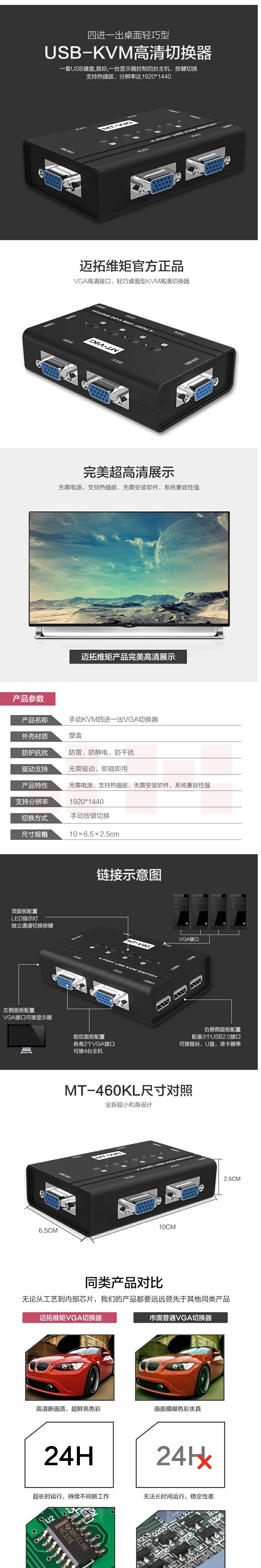 迈拓维矩MT-460KL 4口 USB KVM切换器 4进1出电脑鼠键共享器