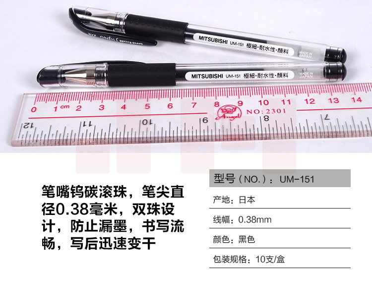 三菱签字笔UM-151水笔0.38mm 中性笔 学生签字笔 红色