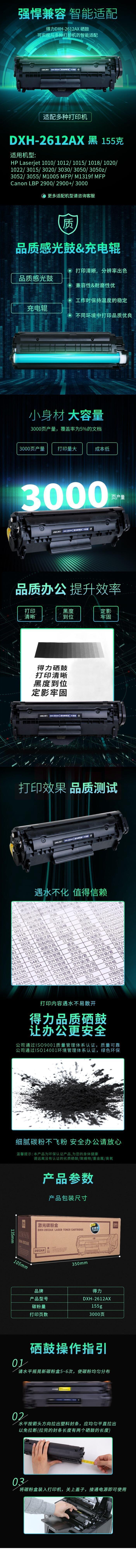 得力DXH-2612AX激光碳粉盒(黑)(适用HP LaserJet 1010/1012/1015/1018/1020/1022/3015/3020/3030/3050/ Canon LBP 2900/2900+/3000)