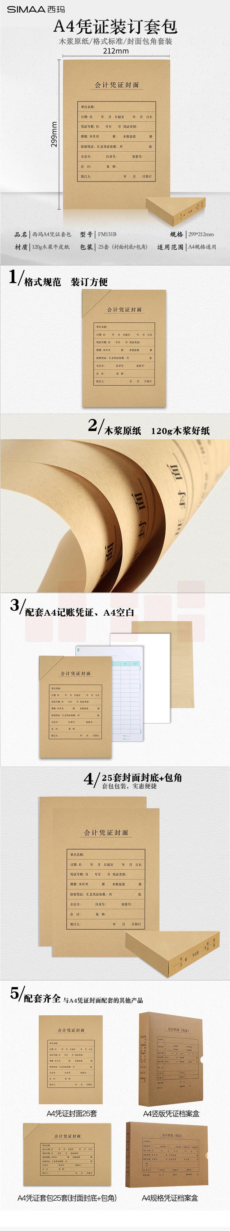 西玛 A4凭证封面套包 25套(封面+包角)木浆120g 212*299mm FM151B