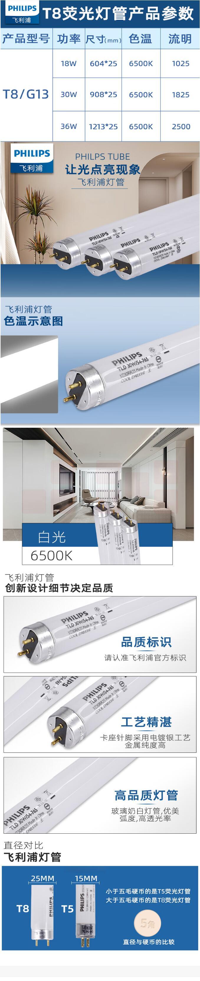 飞利浦 T8/18W 老式传统灯管0.6米 白光
