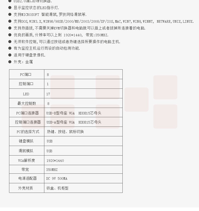 迈拓维矩 kvm切换器键盘快捷键切换8口多电脑vga切换器共享器 MT-2108UL(8口)