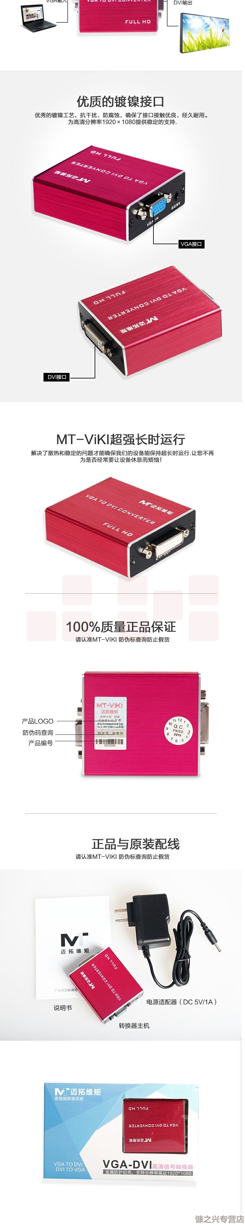 迈拓维矩MT-VD01 VGA转DVI转换器模拟信号转数字信号电脑转