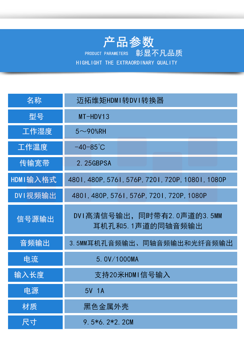 迈拓维矩MT-HDV13 hdmi转dvi转换器高清音视频ps4电脑监控显示器转换