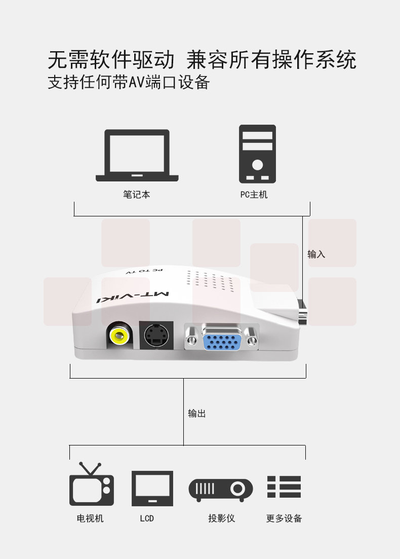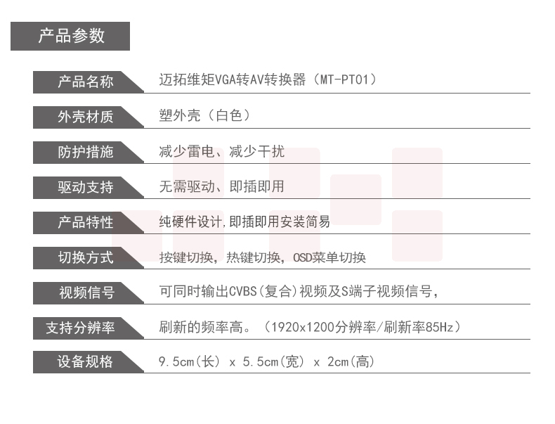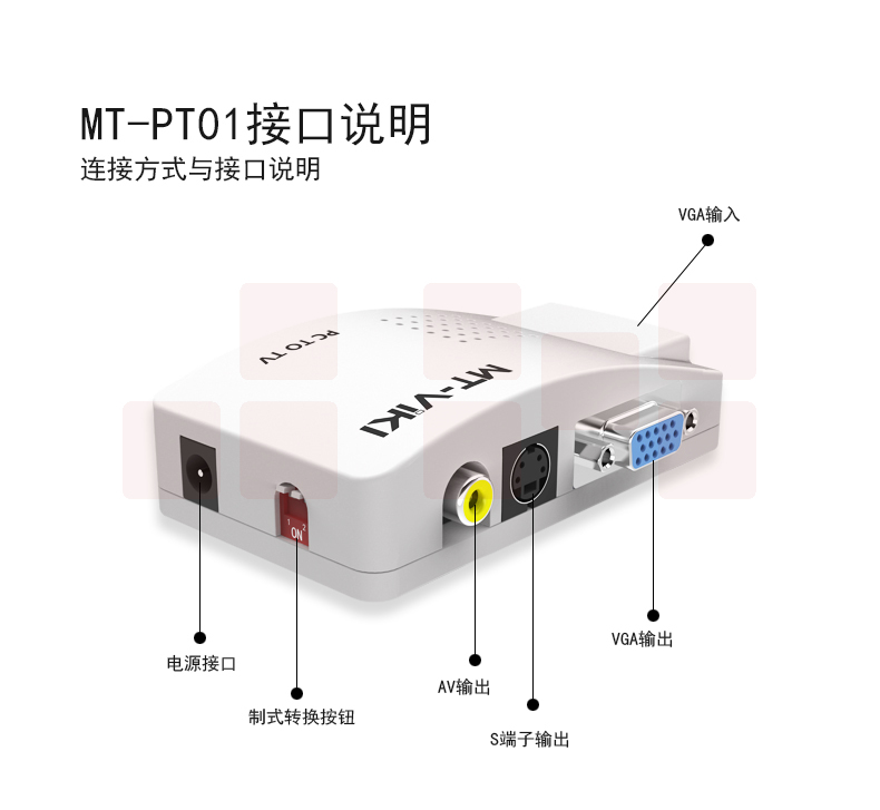 迈拓维矩MT-PT01 vga转av转换器大麦盒子机顶盒转视频
