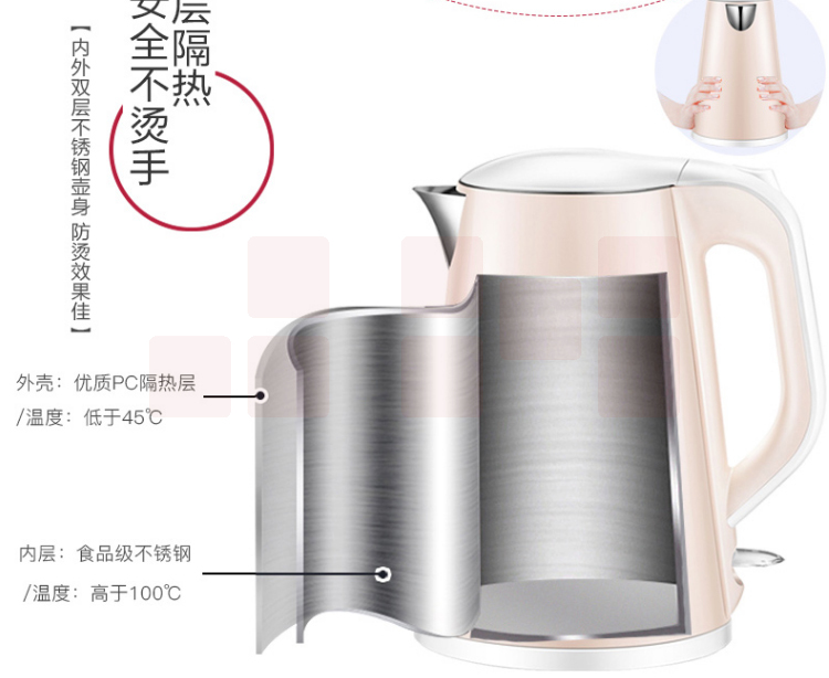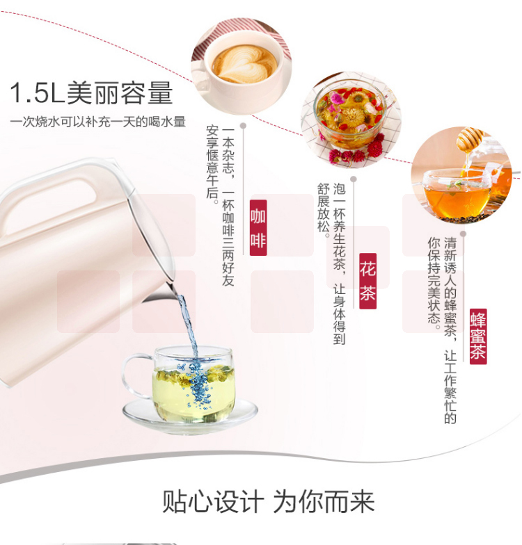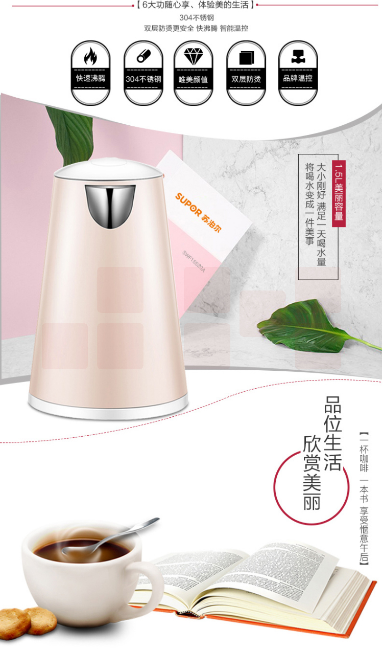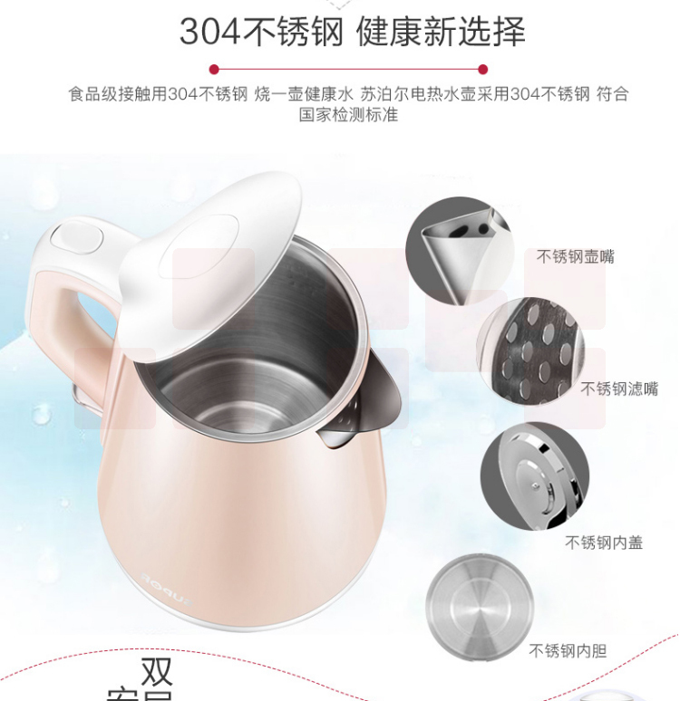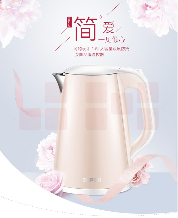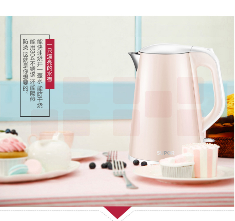 苏泊尔(SUPOR) SW-15S20A电水壶 无缝一体内胆 双层保温防烫 烧水壶 304不锈钢 电热水壶 1.5L