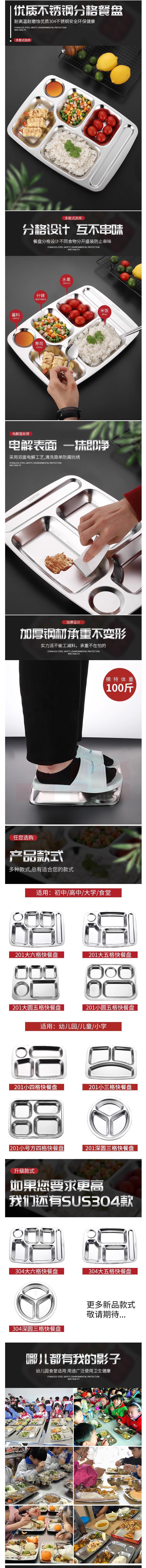 304不锈钢快餐盘 35*26*2.8cm 六格 货号:JC