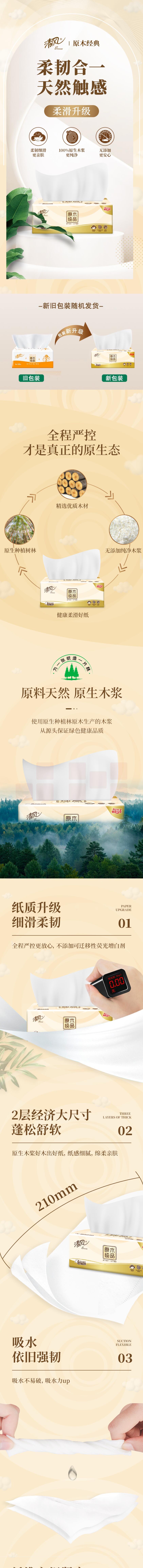 清风 抽纸 软抽纸巾 原木纯品2层*6包(新老包装随机)