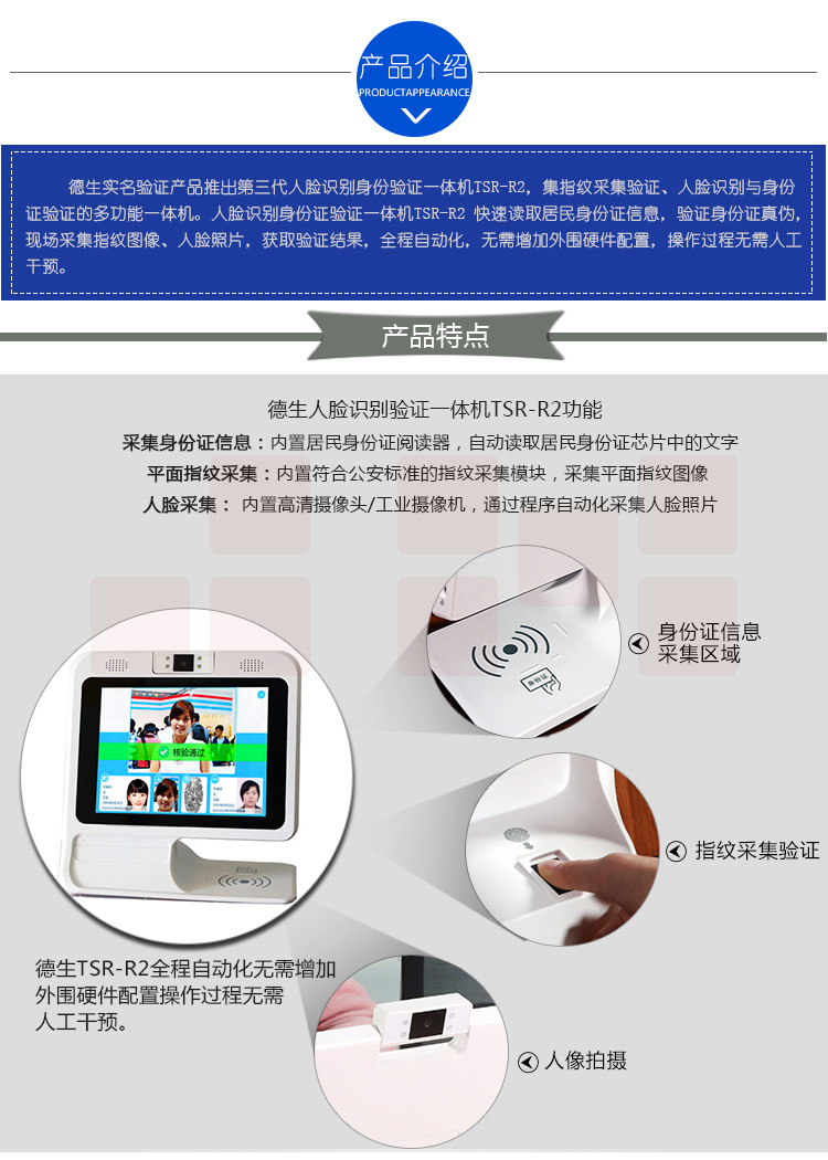 德生实名易 TSR-R2 台式人证识别一体机 保修一年