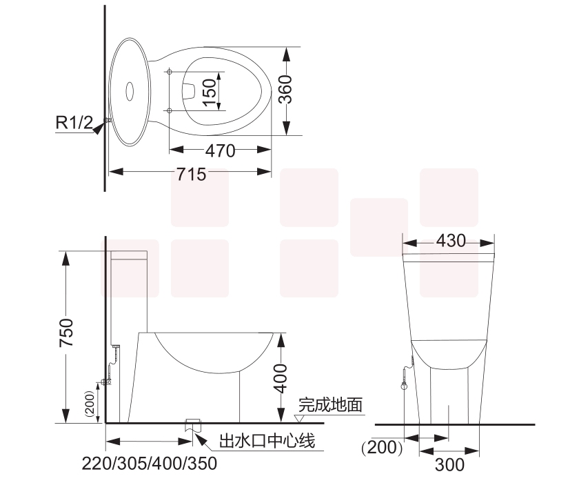 HDC6001C 喷射虹吸式连体坐便器 715×430×750mm 3.5/5 升节水型 PP 静音缓降盖板 坑距 220mm